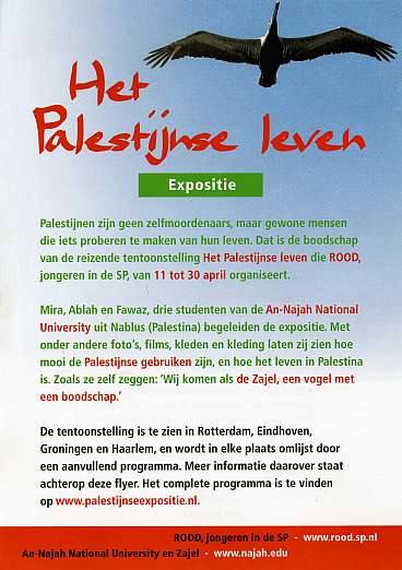 Hanan Ashrawi is een belangrijke en inspirerende Palestijnse vrouw. Democraat in hart en nieren, eens maakte ze deel uit van de onderhandelingsdelegatie in Madrid, tot bleek dat Arafat achter de rug van de delegatie om geheime onderhandelingen voerde in Oslo. Een tijd minister geweest, altijd kritisch ten opzichte van het ondemocratische handelen van Arafat, koos ze uiteindelijk voor de onafhankelijkheid. Ze komt in juni naar Nederland. Laar je de gelegenheid niet ontgaan om met haar kennis te maken.